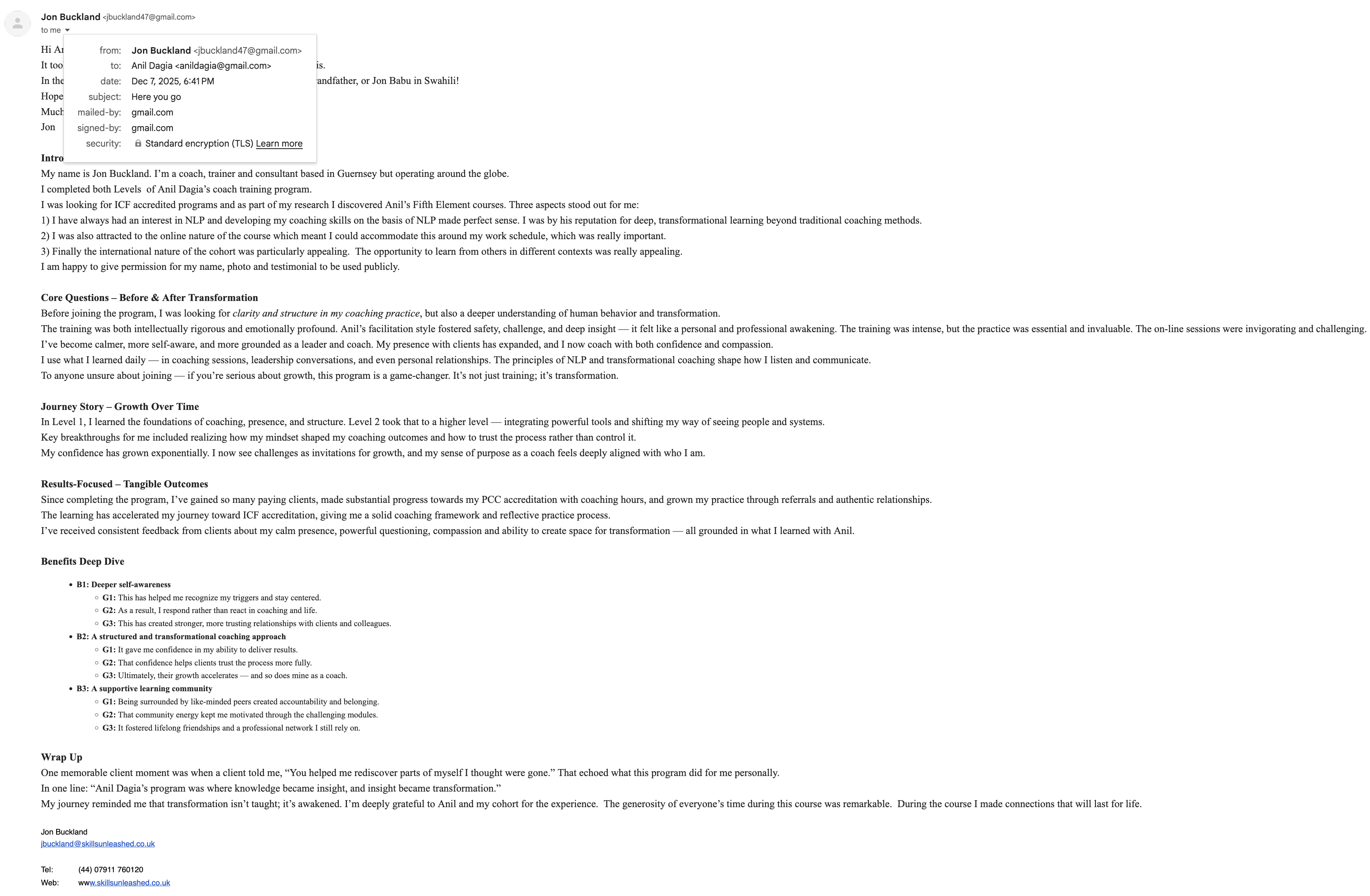 Jon Buckland - Ex-CEO The Medical Specialist Group, Management Consultant - Unleasihing Potential/Skillhs Unleashed, Life Coach